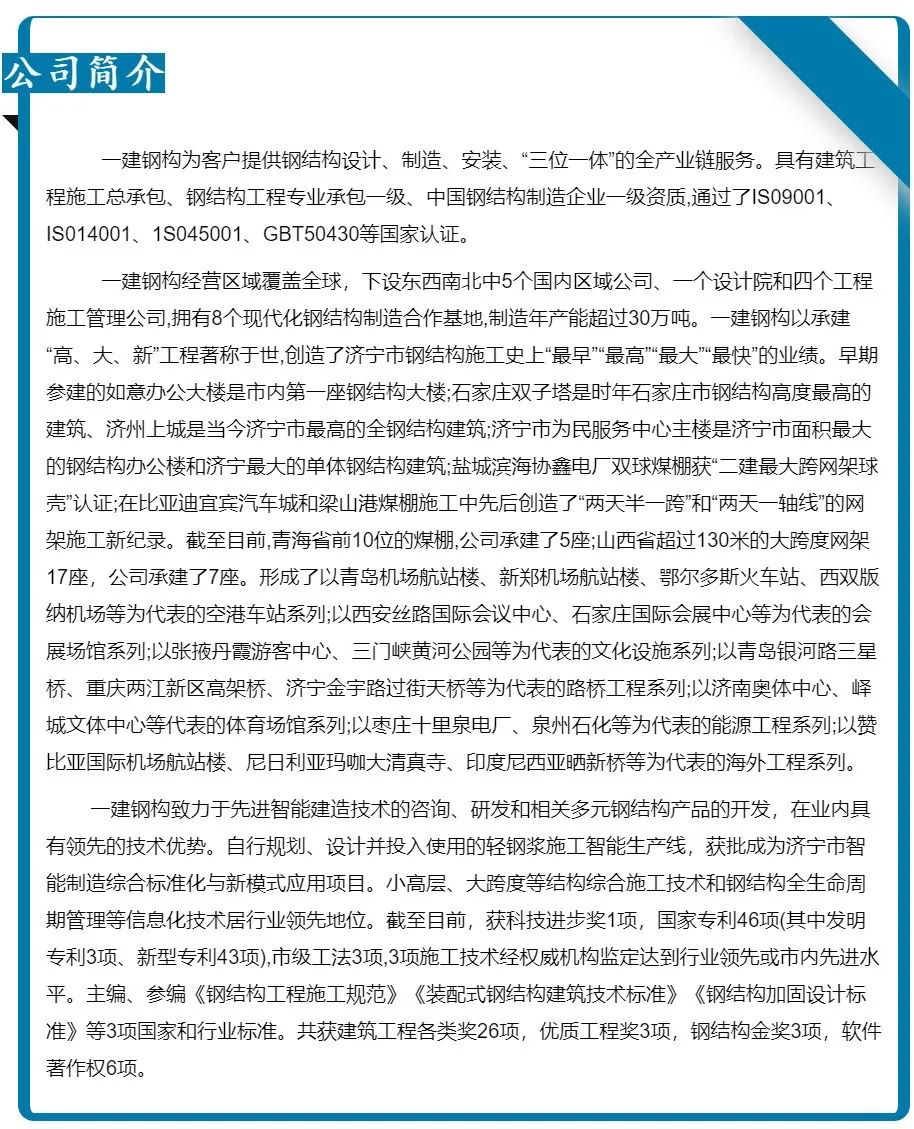 濟寧一建鋼結(jié)構(gòu)工程有限公司承建的金屬屋面及維護工程,涉及1#-4#物流倉庫、高架立體庫。倉庫跨度80米,屋面標高34.1米,為雙向找坡結(jié)構(gòu)。該項目建設(shè)規(guī)模大、工期緊、技術(shù)精度要求高、工況復(fù)雜,自項目開始施工。公司對現(xiàn)場管理嚴格要求,積極配合業(yè)主及總包的整體調(diào)配,施工嚴格執(zhí)行施工方案,遵循規(guī)范標準,合理安排人、機、料等,戮力同心將馬士基臨港旗艦倉項目打造成精 品工程、優(yōu) 質(zhì)工程。